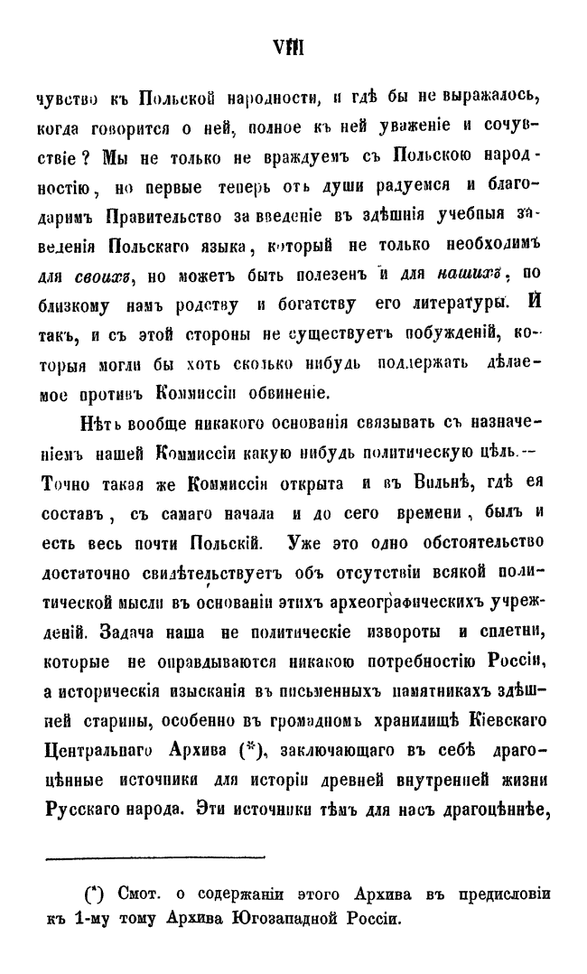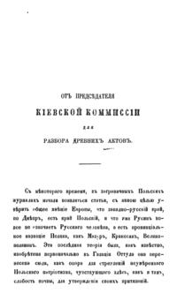 Киевский архив был учрежден по высочайшему повелению в 1852 г., при университете св. Владимира, для хранения древних актовых книг губерний Киевской, Подольской и Волынской. Учреждение его состоялось по инициативе главного деятеля временной комиссии, открытой в 1843 для разбора древних актов при киевском военном, подольском и волынском генерал-губернаторе, — профессора Н. Д. Иванишева. Описание этого архива пошло успешно под руководством г. Царевского (с 1866): четыре описи актовых книг напечатаны в 1869. Всего книг в архиве 5883, ежегодно описывалось до 5 книг. Издание исторических материалов этого архива предприняла Киевская археографическая комиссия, издававшая с 1859 по 1911 года «Архив Юго-Западной России».