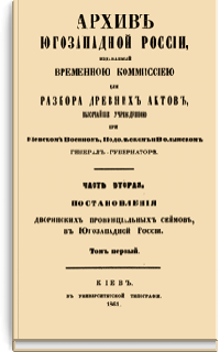 В серии «Архив Юго-Западной России» были напечатаны документы Киевского архива. Издание было предпринято Киевской археографической комиссией с 1859 по 1911 год. Всего вышло 34 тома.