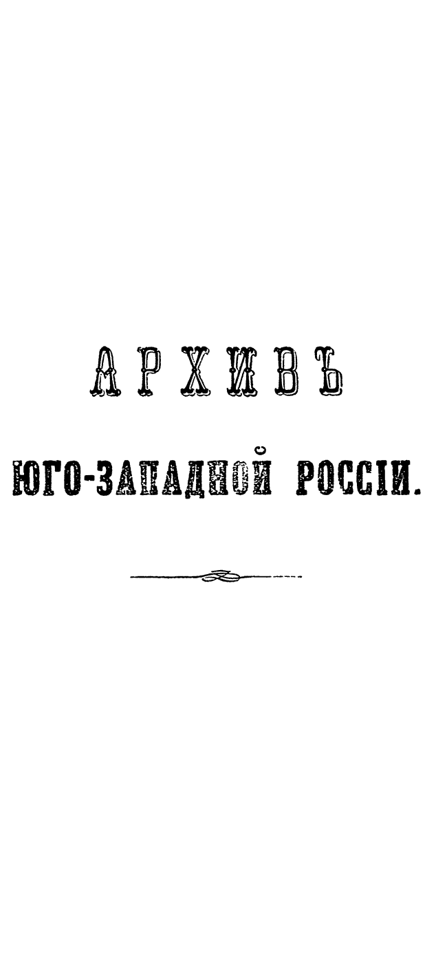 В серии «Архив Юго-Западной России» были напечатаны документы Киевского архива. Издание было предпринято Киевской археографической комиссией с 1859 по 1911 год. Всего вышло 34 тома.