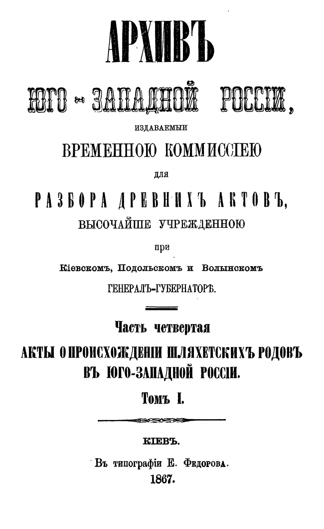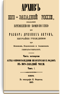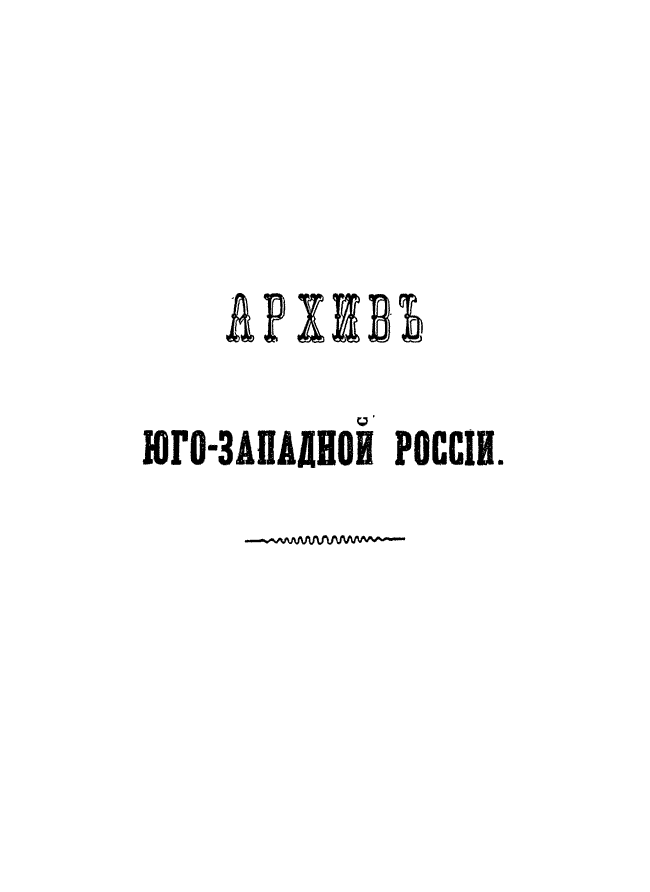 В серии «Архив Юго-Западной России» были напечатаны документы Киевского архива. Издание было предпринято Киевской археографической комиссией с 1859 по 1911 год. Всего вышло 34 тома.