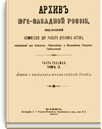 В серии «Архив Юго-Западной России» были напечатаны документы Киевского архива. Издание было предпринято Киевской археографической комиссией с 1859 по 1911 год. Всего вышло 34 тома.