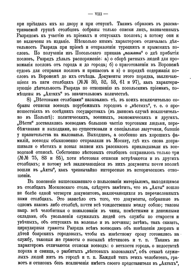 Комитет, приводивший в порядок Московские Сенатские архивы после разорения их французами в 1812 году, отнес к Московскому столу Разрядного приказа, ведавшего всеми распорядками государственной службы, 208 книг и 1180 столбцов. Книги по их содержанию были разделены на разрядные, записные, боярские, жилецкие, списки рейтарских, драгунских и солдатских полков, десятни. Редакция отбирает наиболее важные и никогда ранее не публиковавшиеся дела с 1571-го по 1664 год.