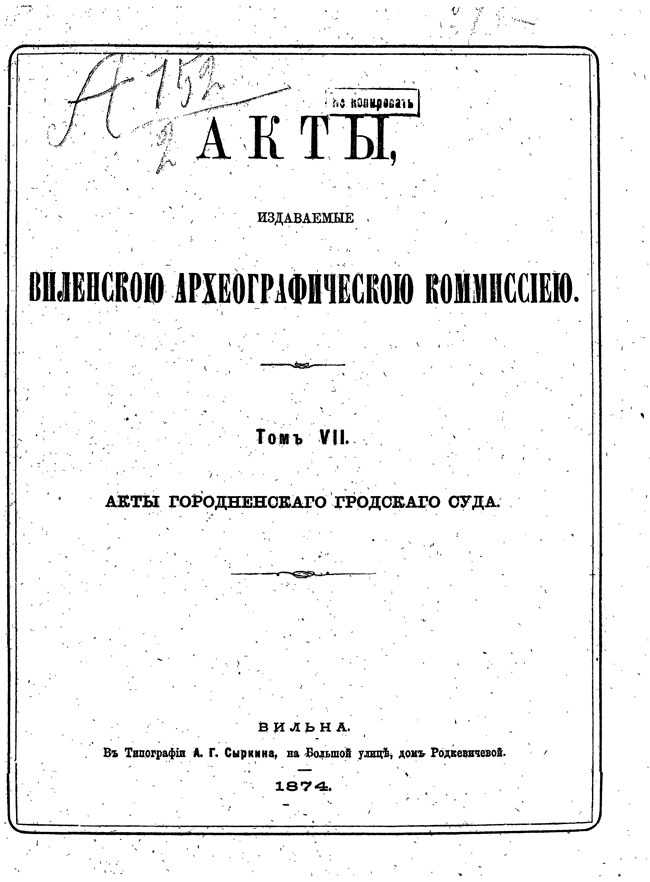 Том VII. Акты Гродненского городского суда.