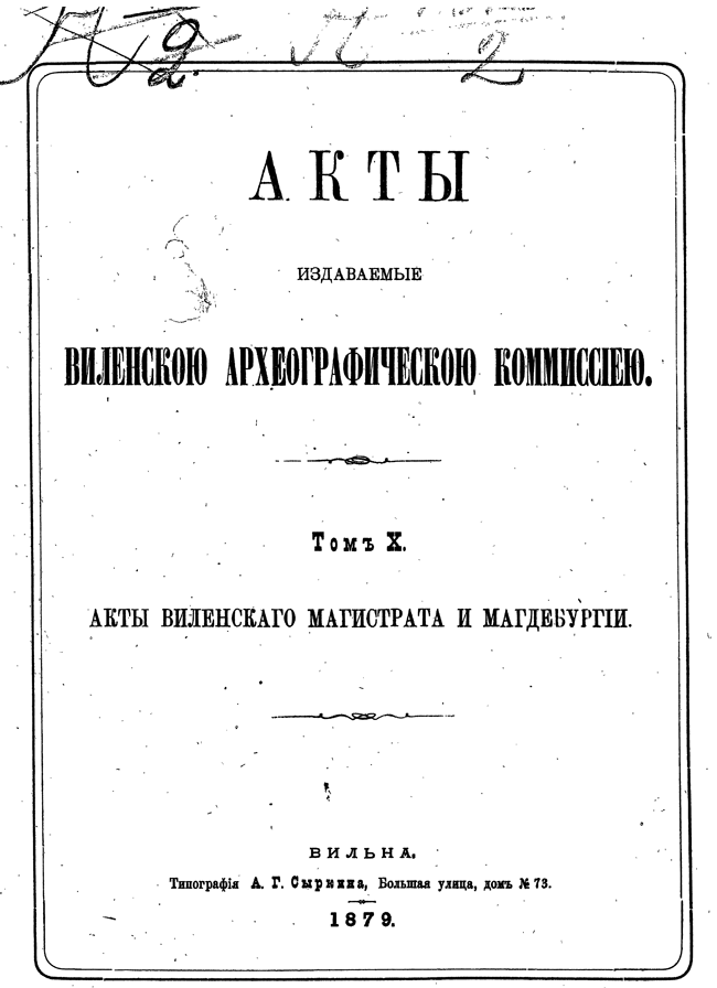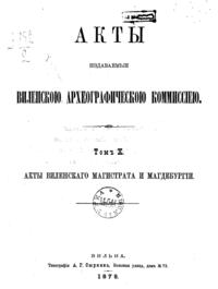 Обилие актов и документов Виленского центрального архива (19244 актовых книг) и желание исследовать прошлое Литвы, которая и в старину принадлежала России, вызвали после 1863 года учреждение особой комиссии для разбора в городе Вильне древних актов.