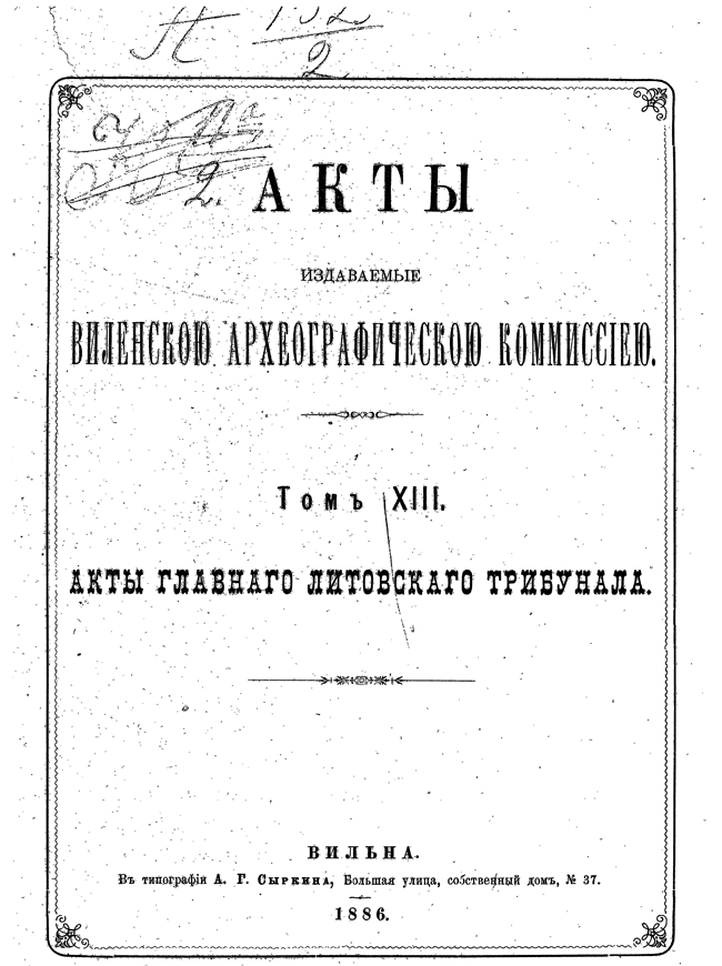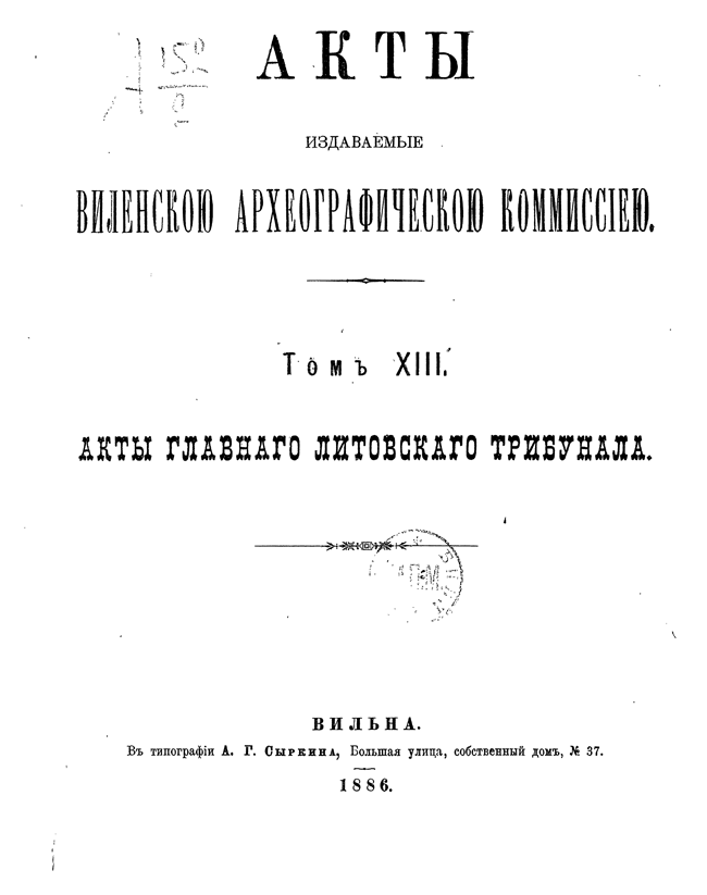 Обилие актов и документов Виленского центрального архива (19244 актовых книг) и желание исследовать прошлое Литвы, которая и в старину принадлежала России, вызвали после 1863 года учреждение особой комиссии для разбора в городе Вильне древних актов.