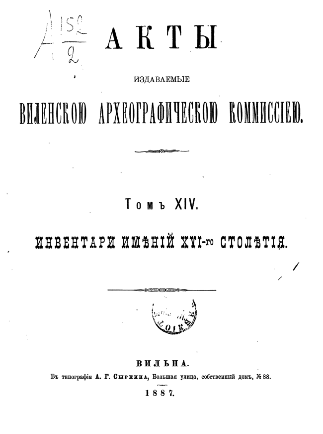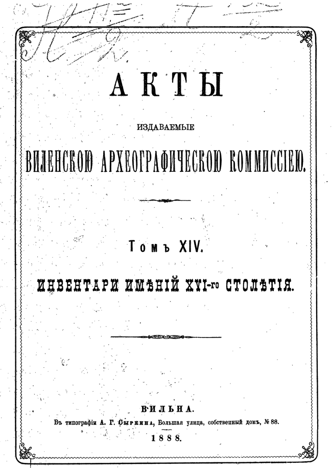 Обилие актов и документов Виленского центрального архива (19244 актовых книг) и желание исследовать прошлое Литвы, которая и в старину принадлежала России, вызвали после 1863 года учреждение особой комиссии для разбора в городе Вильне древних актов.