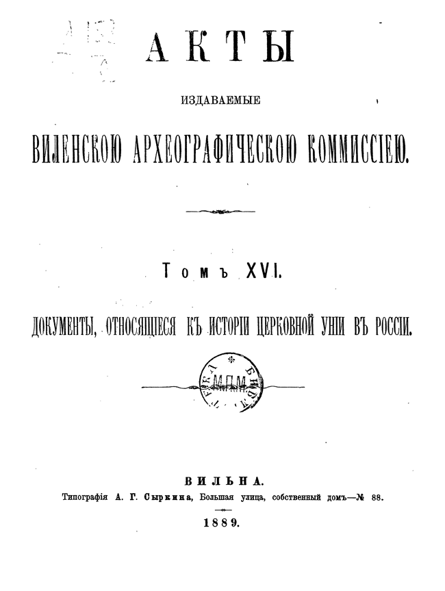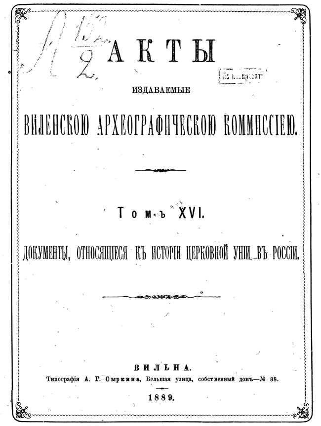 Акты Виленской археографической комиссии: Том XVI.