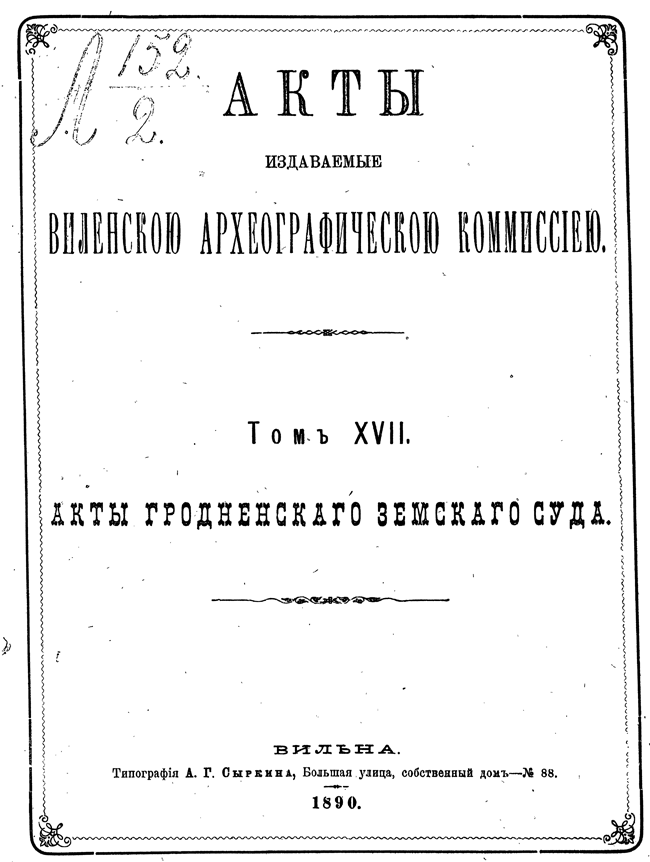 Обилие актов и документов Виленского центрального архива (19244 актовых книг) и желание исследовать прошлое Литвы, которая и в старину принадлежала России, вызвали после 1863 года учреждение особой комиссии для разбора в городе Вильне древних актов.