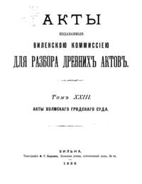Обилие актов и документов Виленского центрального архива (19244 актовых книг) и желание исследовать прошлое Литвы, которая и в старину принадлежала России, вызвали после 1863 года учреждение особой комиссии для разбора в городе Вильне древних актов.
