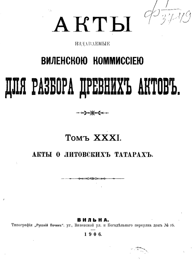 Обилие актов и документов Виленского центрального архива (19244 актовых книг) и желание исследовать прошлое Литвы, которая и в старину принадлежала России, вызвали после 1863 года учреждение особой комиссии для разбора в городе Вильне древних актов.