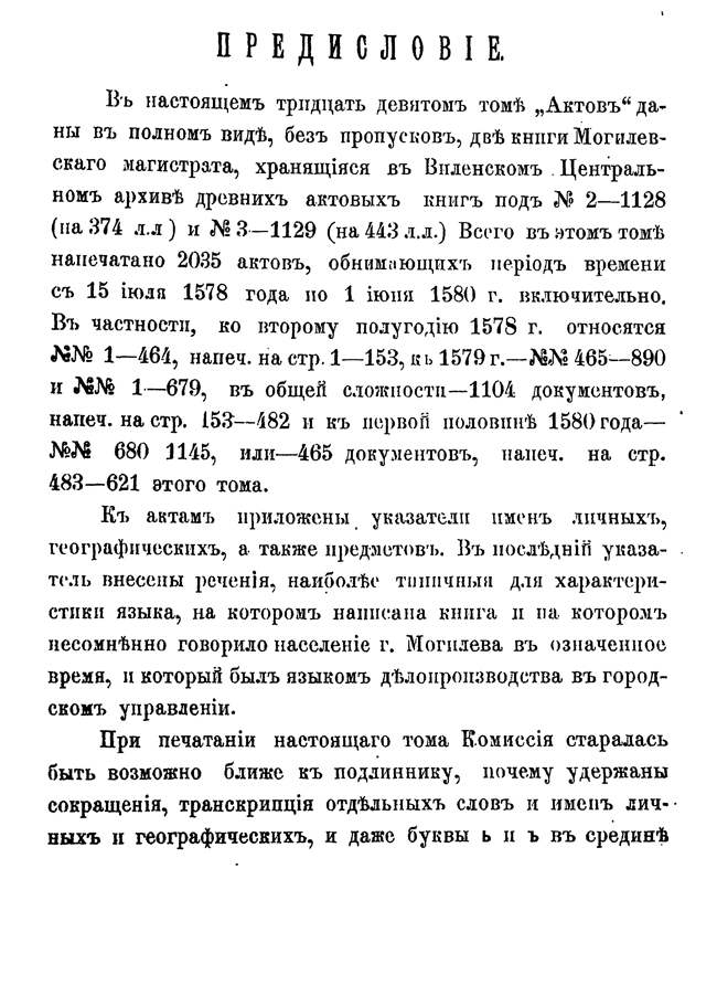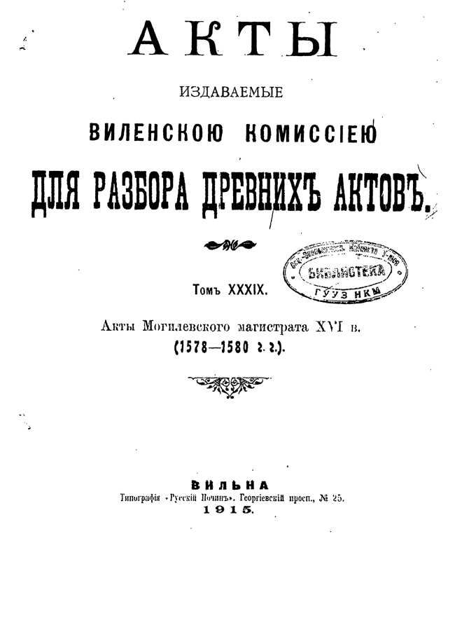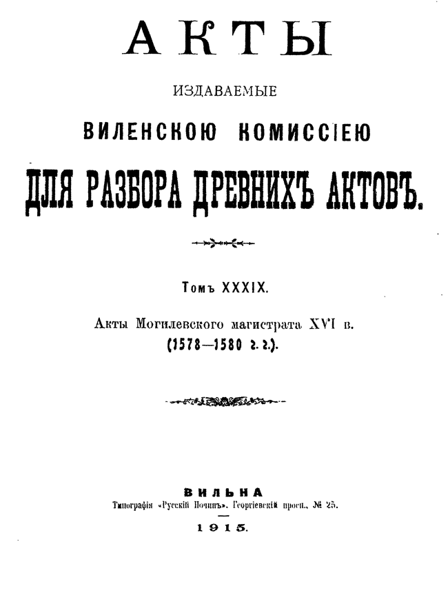 Обилие актов и документов Виленского центрального архива (19244 актовых книг) и желание исследовать прошлое Литвы, которая и в старину принадлежала России, вызвали после 1863 года учреждение особой комиссии для разбора в городе Вильне древних актов.