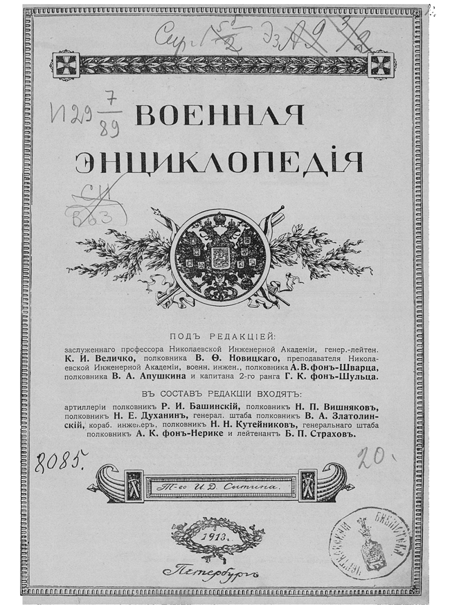 Благодаря издателю Ивану Дмитриевичу Сытину (1851-1934) энциклопедия по изяществу издания превосходила все подобные европейские издания того времени. В работе над энциклопедией принимали участие многие ведущие военные специалисты России, среди них особо выделяются генерал-майор А. Н. Апухтин, генерал-лейтенант М. М. Бородкин, генерал-майор И. И. Защук, капитан 2-го ранга П. И. Белавенец, полковник Н. М. Затворницкий, полковник П. Н. Краснов, генерал-лейтенанты А. П. Михневич, полковник А. Е. Снесарев, капитан В. К. Судравский и многие другие.