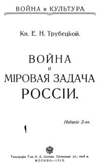 «Волею судеб России навязывается освободительная миссия; и в этой миссии она находит самое себя, свое лучшее национальное я... России нужно чувствовать, что она служит не себе только, а всему человечеству, всему миру».