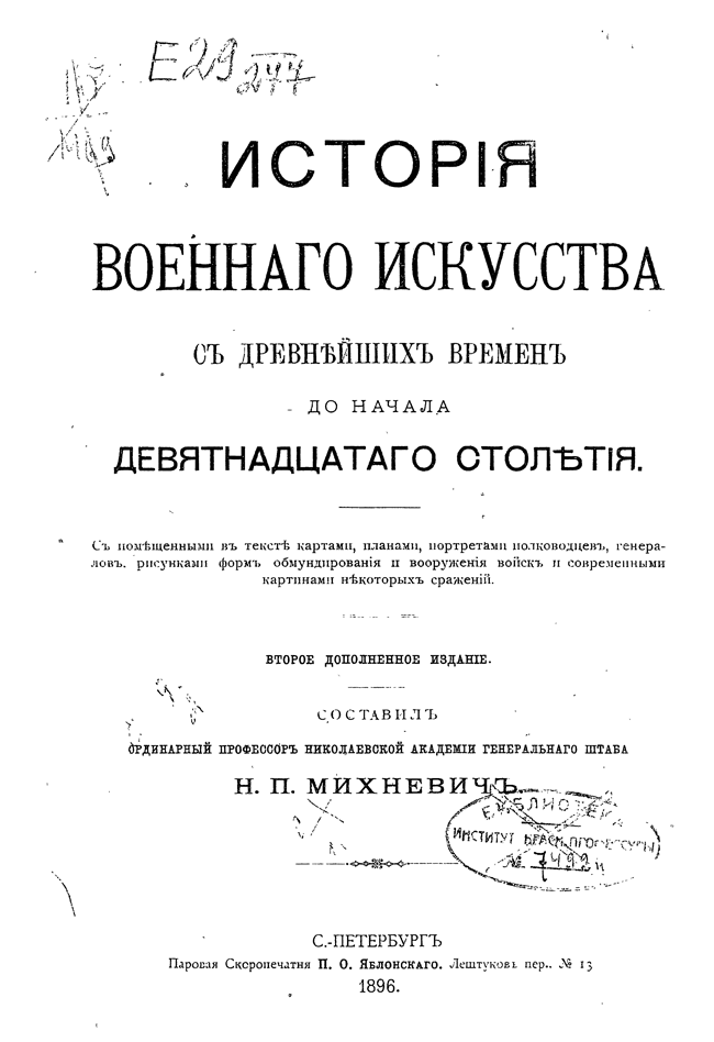 При написании настоящей книги генерал Н. П. Михневич руководствовался целью выяснить состояние военного искусства в разные исторические эпохи, последовательность в его развитии, а также указать те исторические причины, которые повлияли на его развитие или падение в ту или иную эпоху.