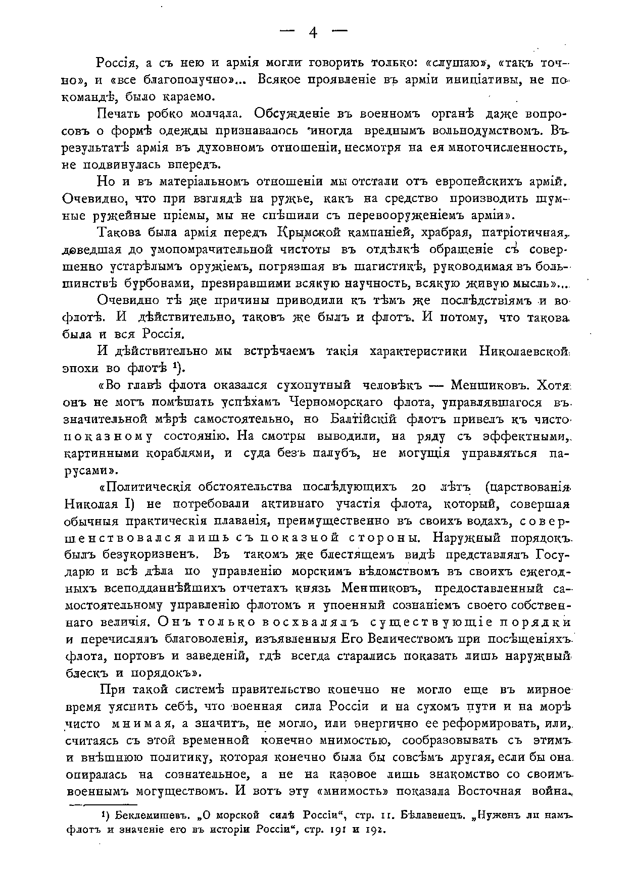 «История» рисует картину постепенного развития русского военного дела. С особым вниманием издание останавливается на наиболее выдающихся боевых эпизодах, интересуясь в тоже время организацией, бытом, вооружением и боевой подготовкой наших войск, в связи с политической жизнью государства. «История русской армии и флота» по своим размерам ( до 170 печатных листов) значительно превосходит прежние издания этого рода. Снабженная большим количеством иллюстраций и фотографий, она предназначалась для просвещения и русского офицерства, и русского общества.