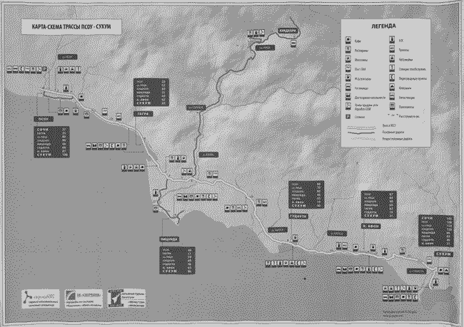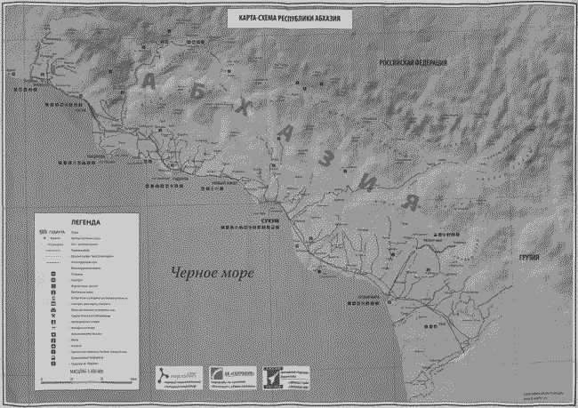 Карта-схема Абхазии с достопримечательностями и важнейшими объектами.