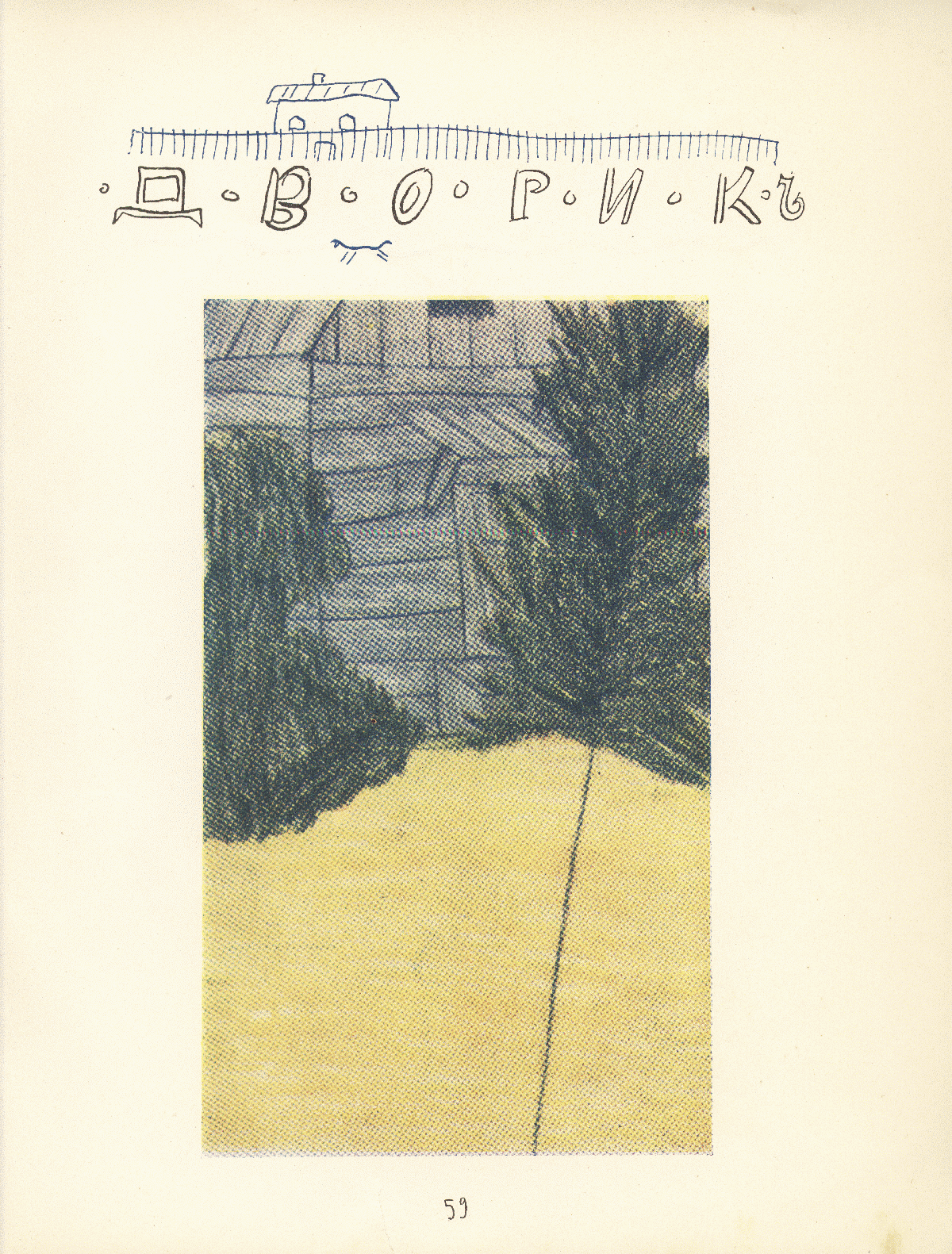 тексты или просто прислать собственные сочинения. Поэтому в книгу вошли небольшие рассказы, загадки, рисунки с подписями и без них, стихи. Около тридцати авторов перечислены в оглавлении этой книжки. На последних двух страницах этого издания перечислены все художники, это — дети от четырех до двенадцати лет, например, Оличка