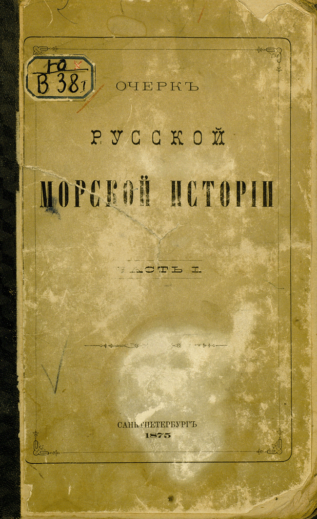 Первая часть «Очерка русской морской истории» содержит обзор морской деятельности России с древнейших времен до кончины Петра Великого. Автор работы, военно-морской историк Ф. Ф. Веселаго, задавался целью в сжатом виде представить за этот период истории главные черты русской морской деятельности.