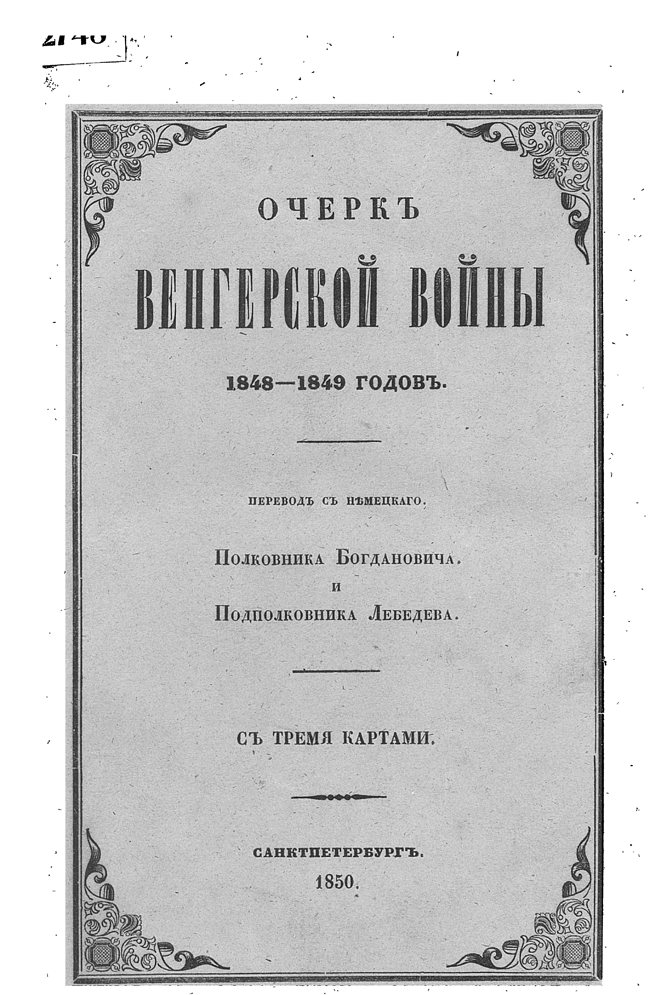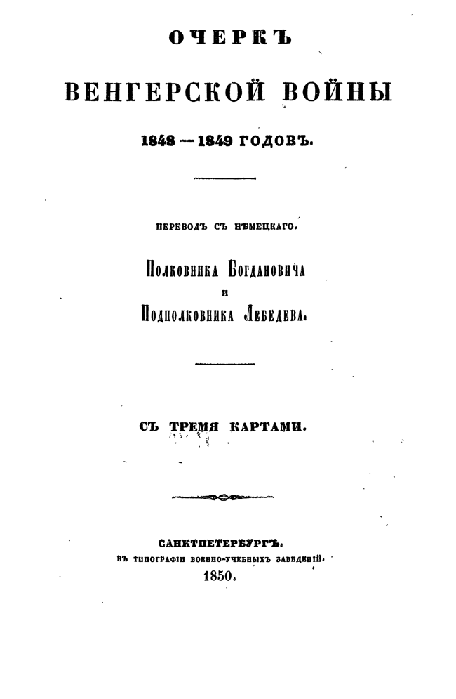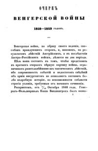 Данный очерк является переводом австрийского сочинения, посвященного событиям 1848-1849 годов. Перевод выполнен полковником Богдановичем и подполковником Лебедевым. Книга, выпущенная менее чем через год после описываемых событий не может похвастаться богатством точных фактических сведений, но содержит интересный свежий взгляд на произошедние события одной из заинтересованных сторон.