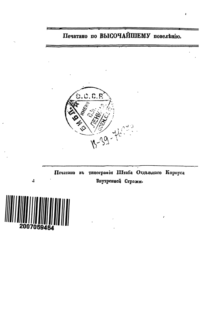 Тип. Штаба Отдельного Корпуса Внутренней Стражи