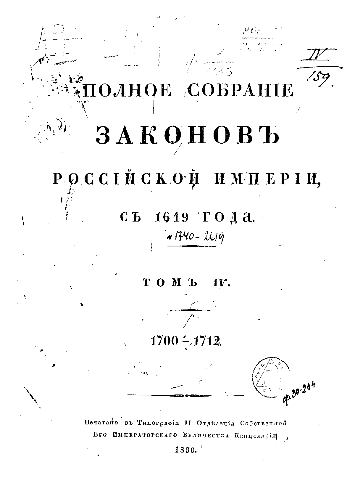 Полное собрание законов Российской Империи. Собрание Первое. Том IV