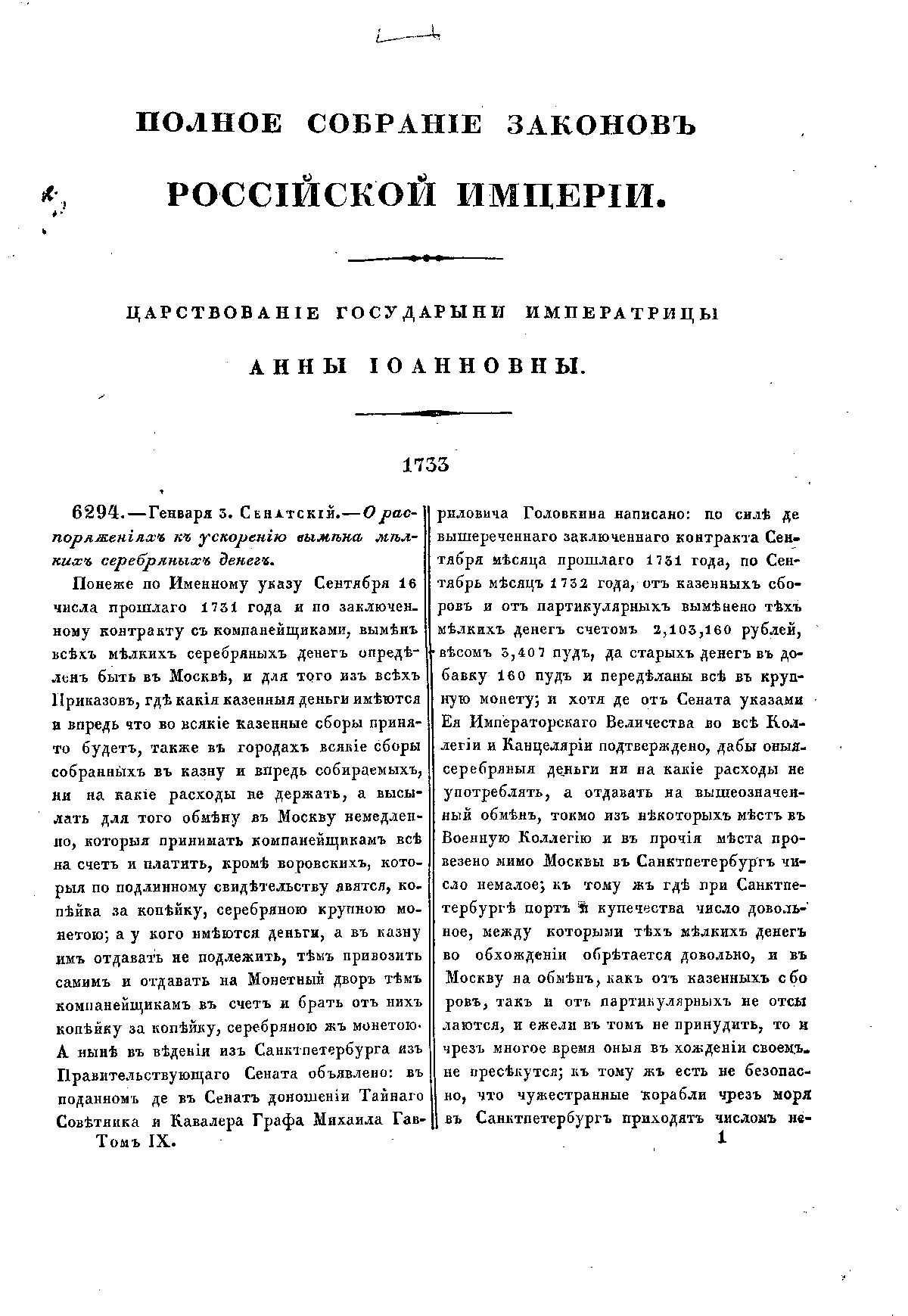 Полное собрание законов Российской Империи. Собрание Первое. Том IX