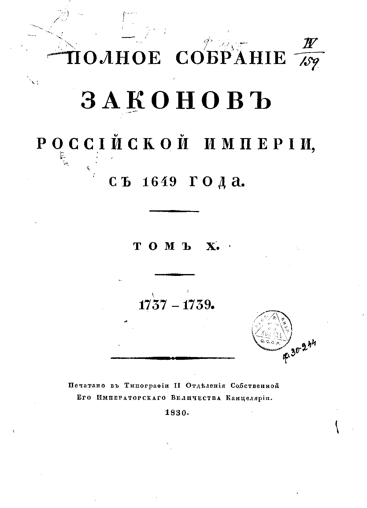 Полное собрание законов Российской Империи. Собрание Первое. Том X