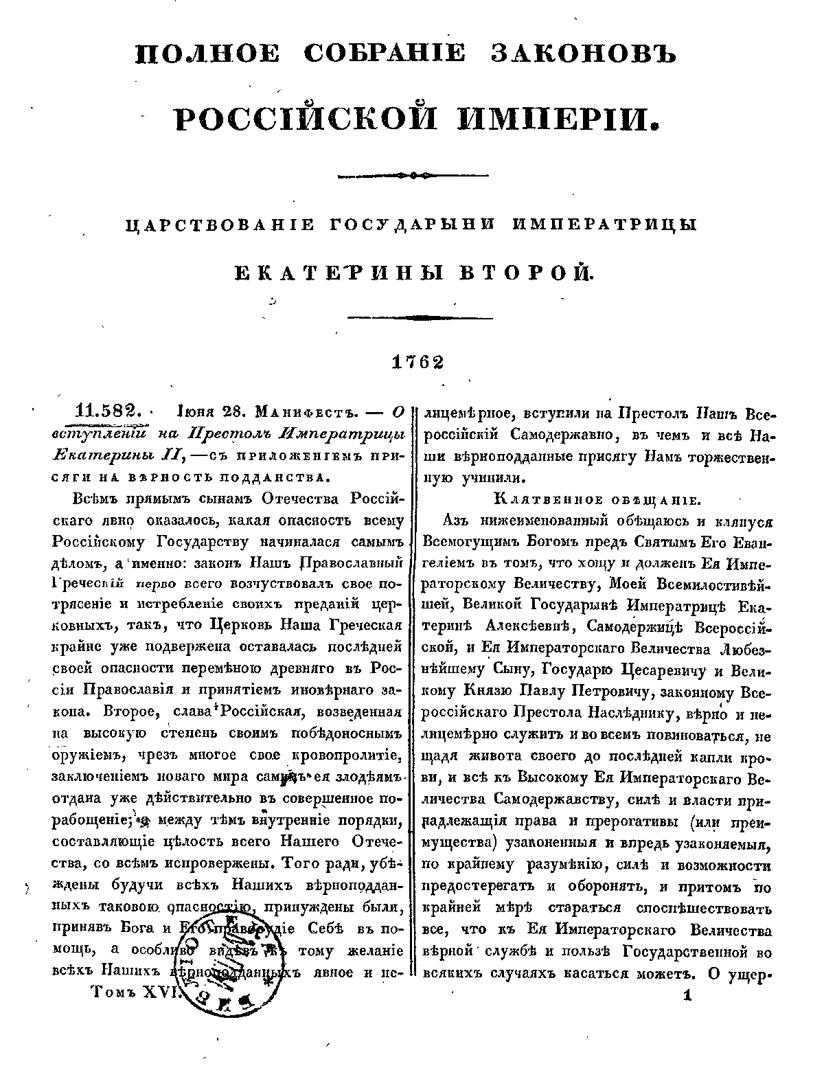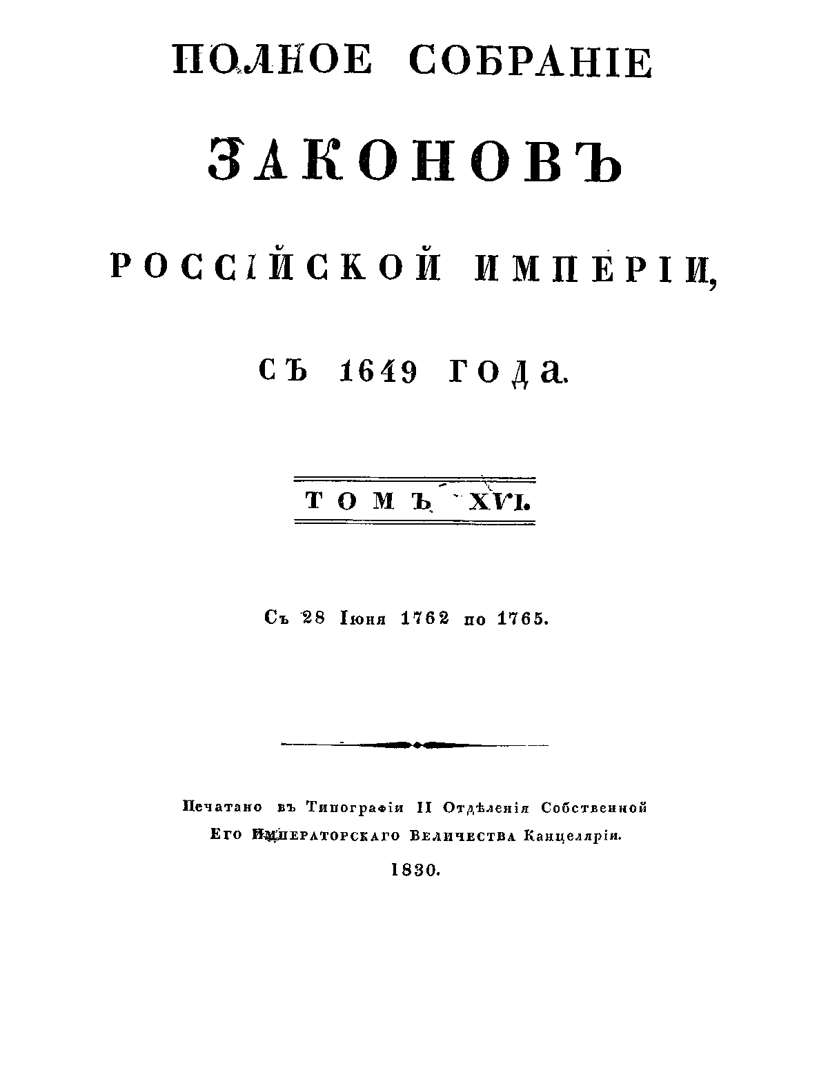 Полное собрание законов Российской Империи. Собрание Первое. Том XVI
