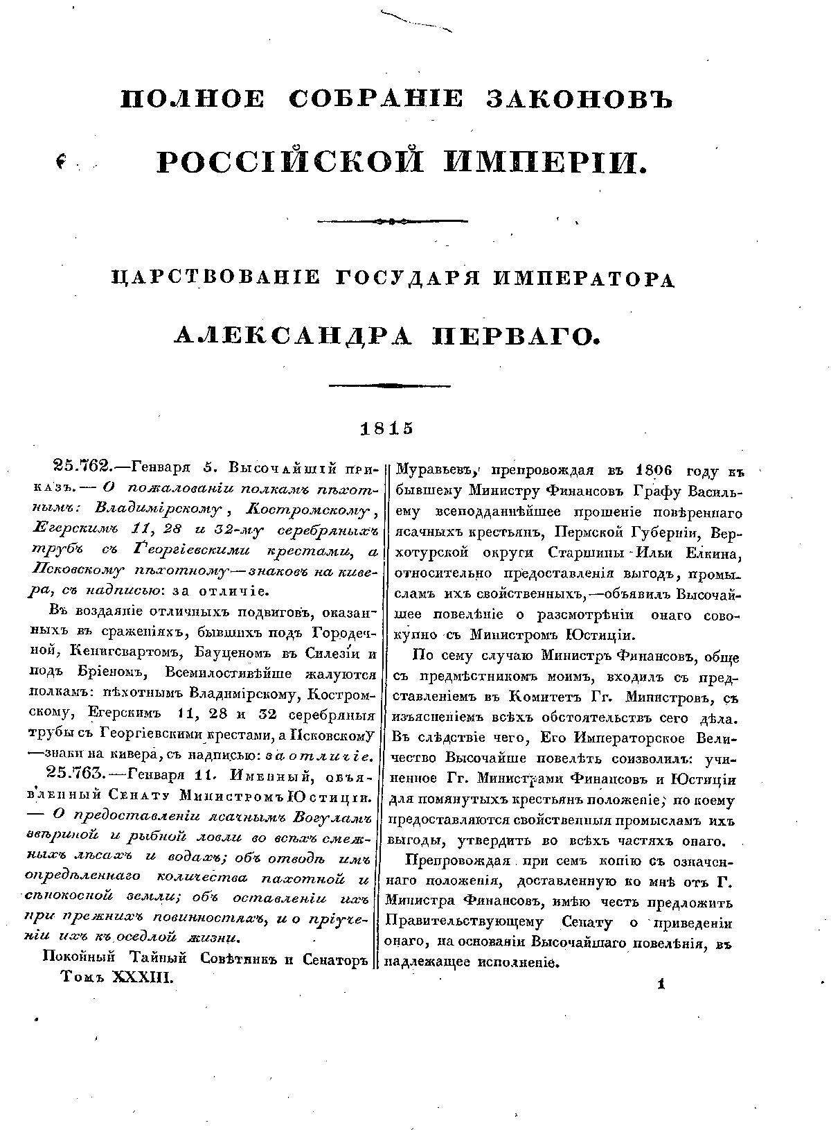 Полное собрание законов Российской Империи. Собрание Первое. Том XXXIII