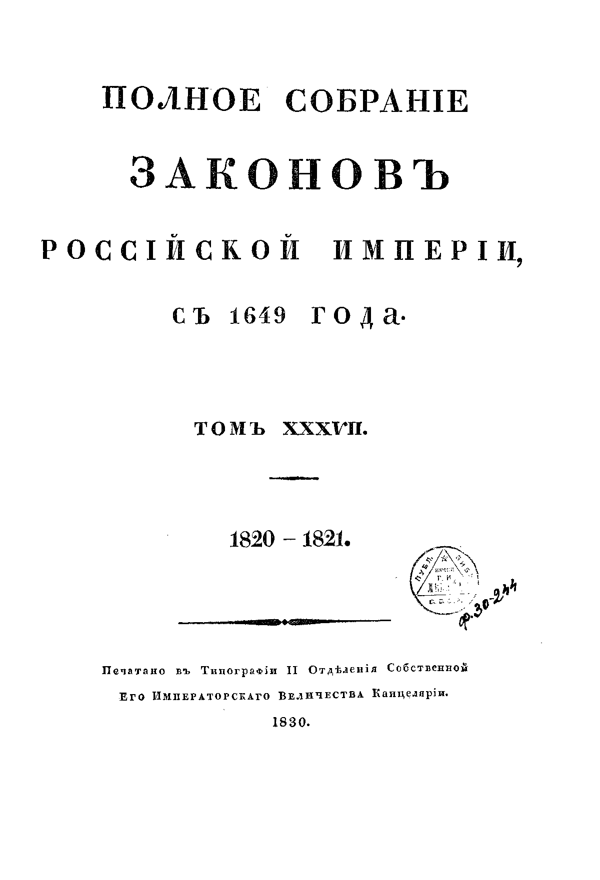 Полное собрание законов Российской Империи. Собрание Первое. Том XXXVII