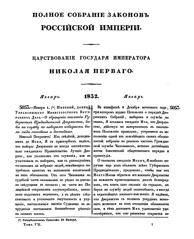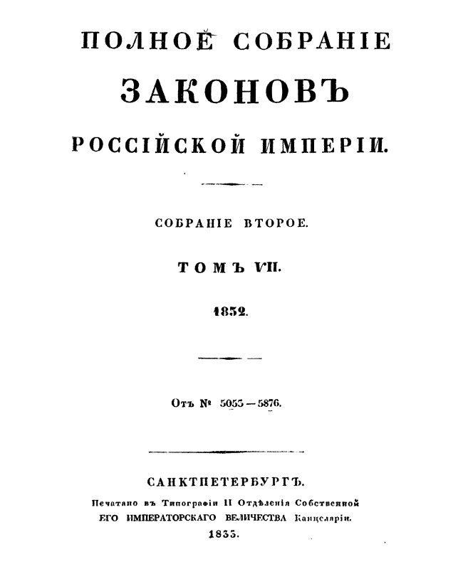 Полное собрание законов Российской Империи. Собрание Второе. Том VII