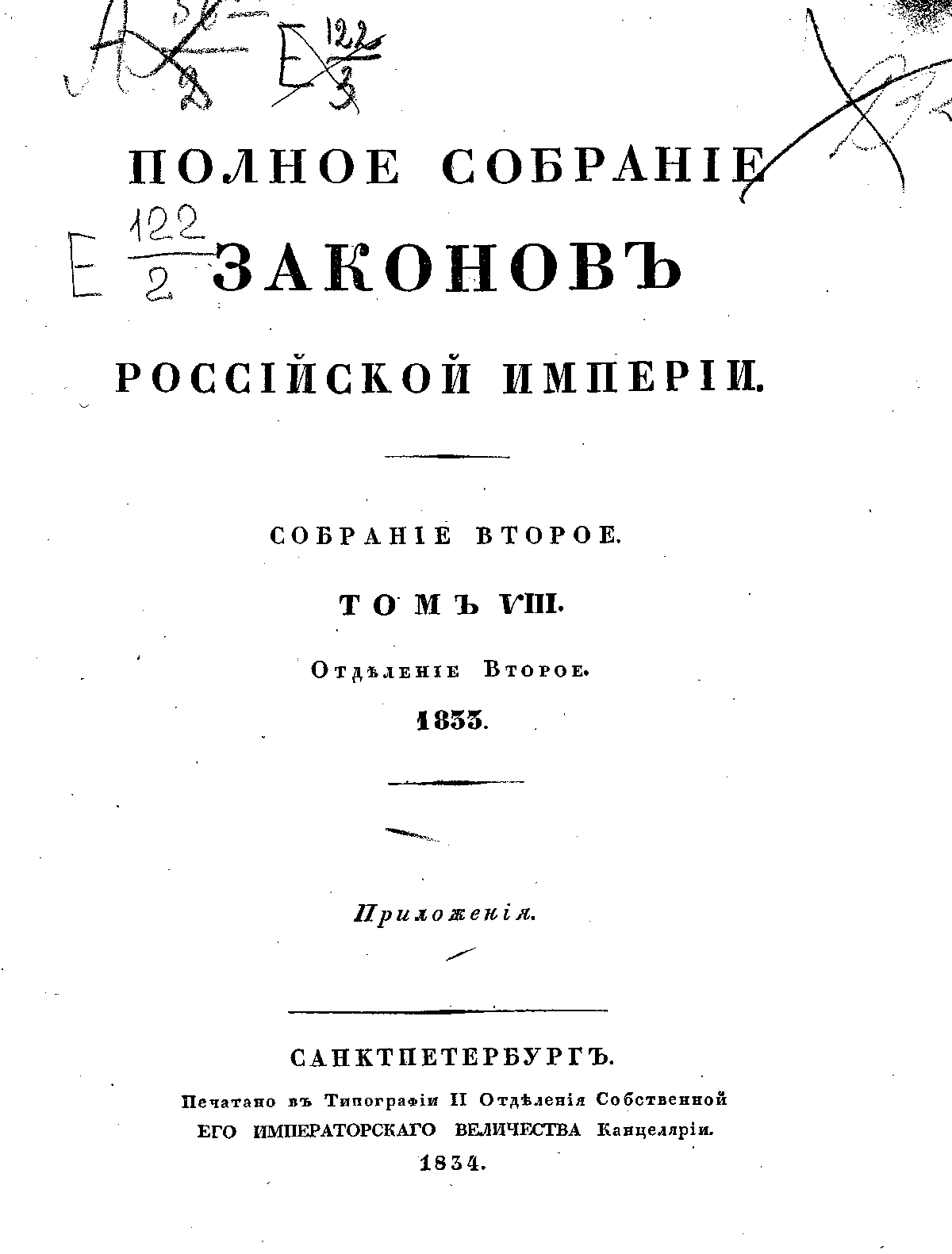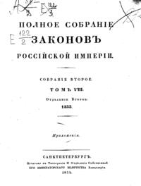 Полное собрание законов Российской Империи. Собрание Второе. Том VIII. Отделение 2