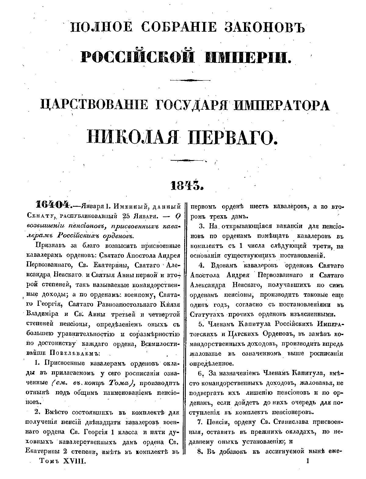 Полное собрание законов Российской Империи. Собрание Второе. Том XVIII. Отделение 1