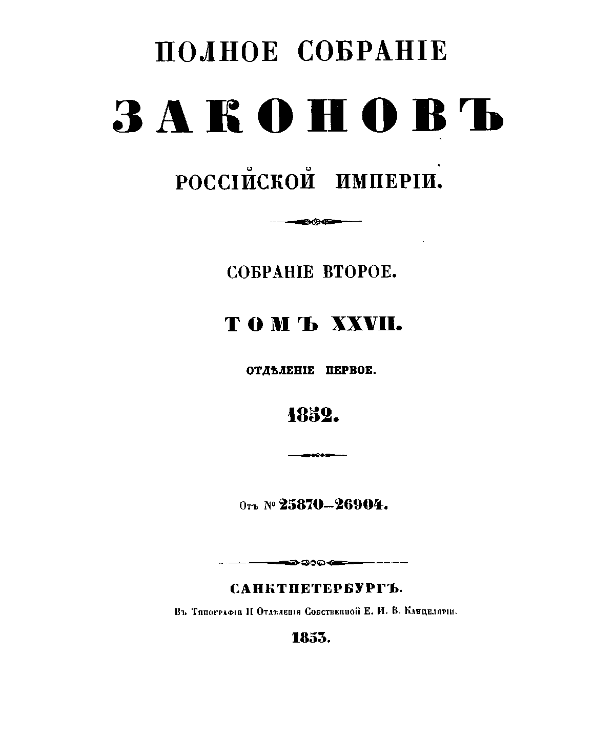 Полное собрание законов Российской Империи. Собрание Второе. Том XXVII. Отделение 1
