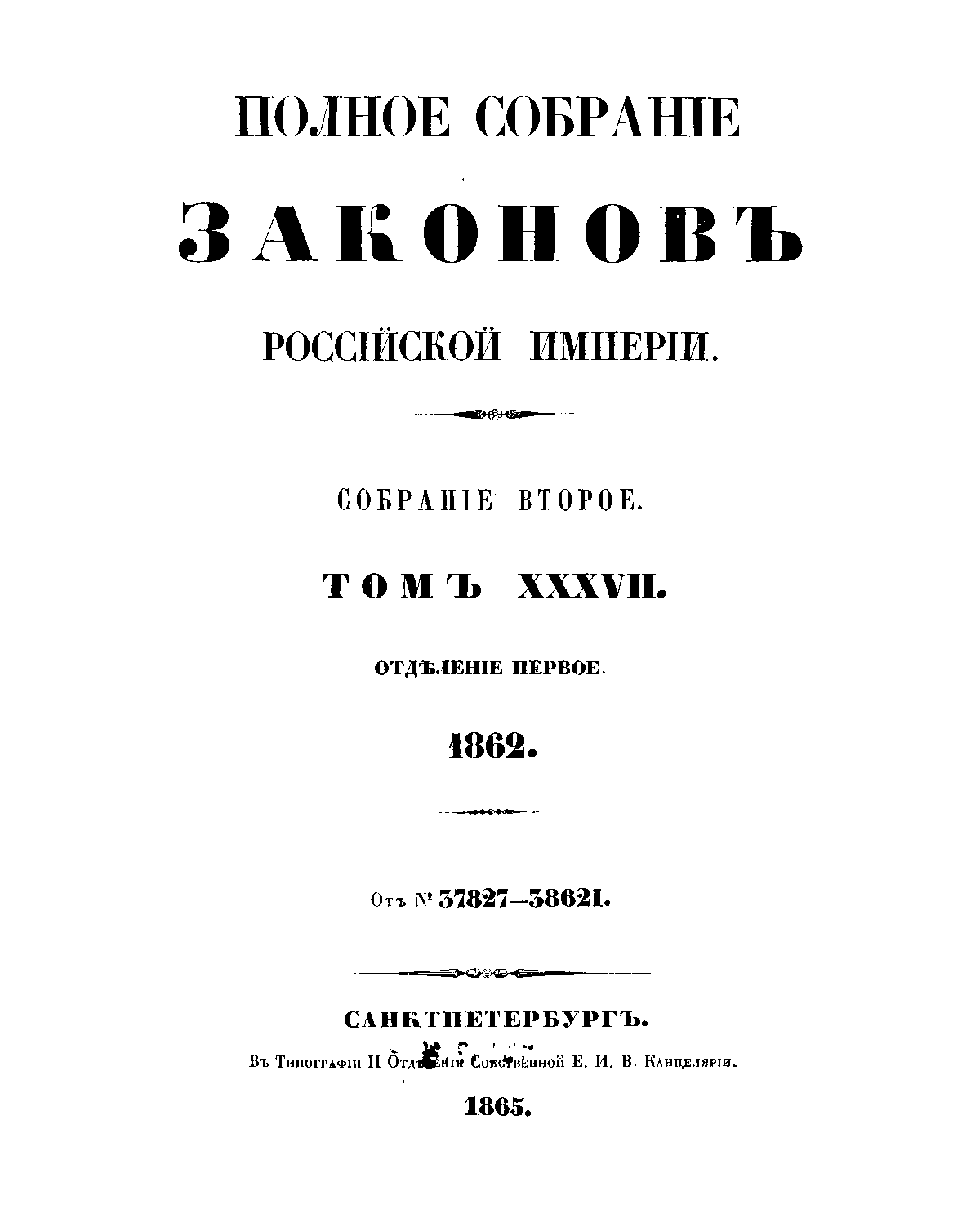 Полное собрание законов Российской Империи. Собрание Второе. Том XXXVII. Отделение 1