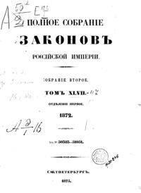 Полное собрание законов Российской Империи. Собрание Второе. Том XLVII. Отделение 1