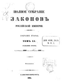 Полное собрание законов Российской Империи. Собрание Второе. Том LV. Отделение 2