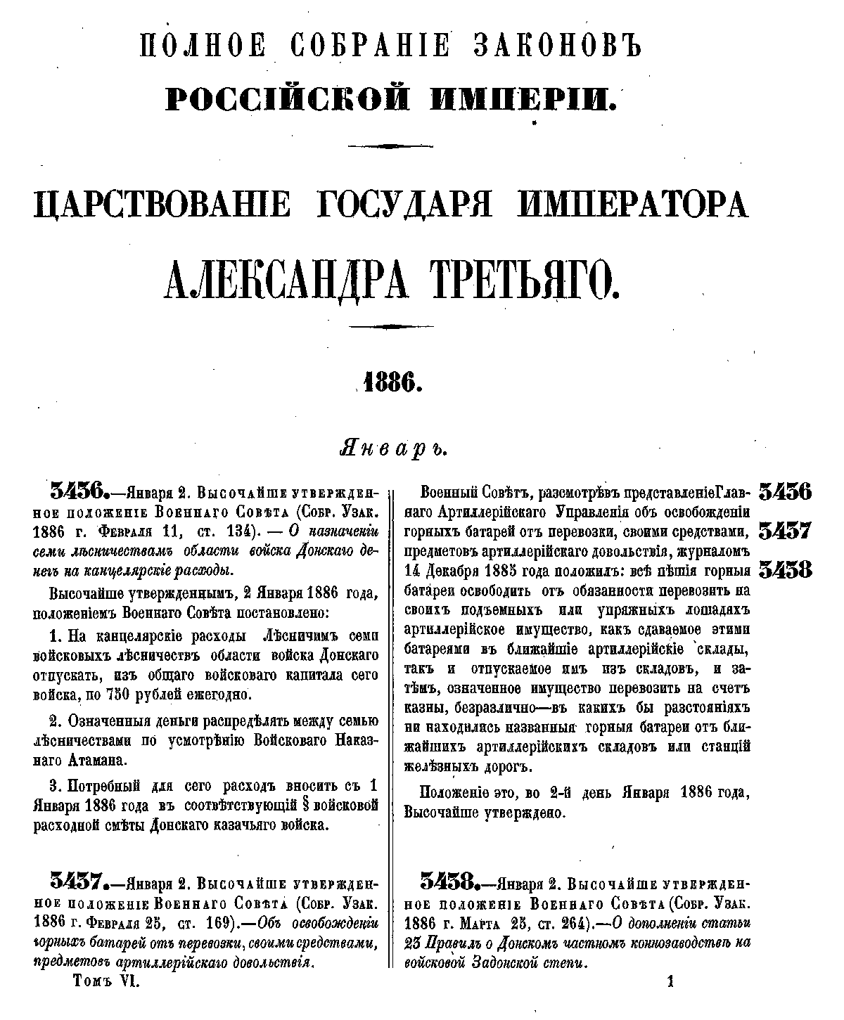 Полное собрание законов Российской Империи. Собрание Третье. Том VI