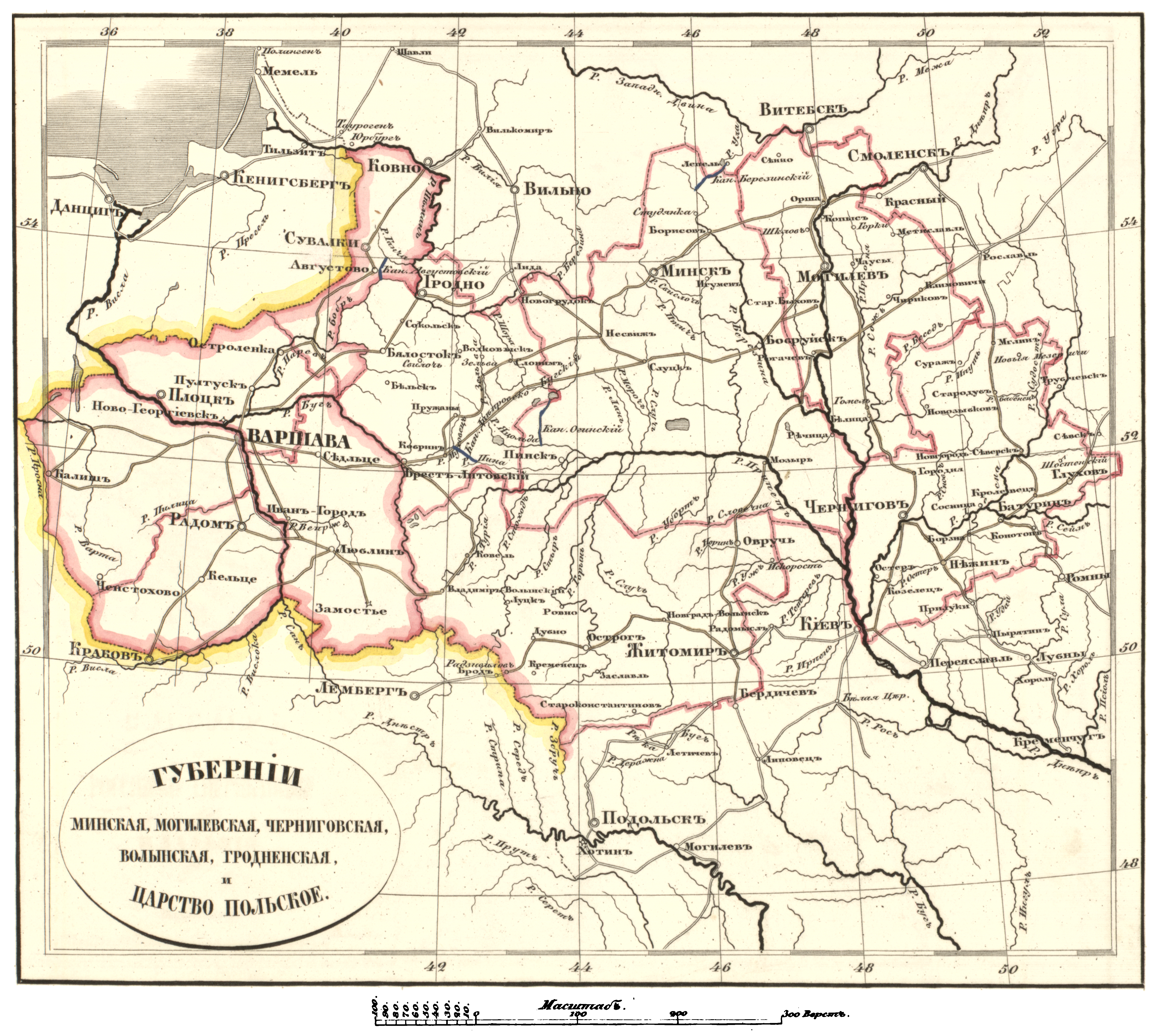 Губернии Минская, Могилевская, Черниговская, Волынская, Гродненская. Царство Польское