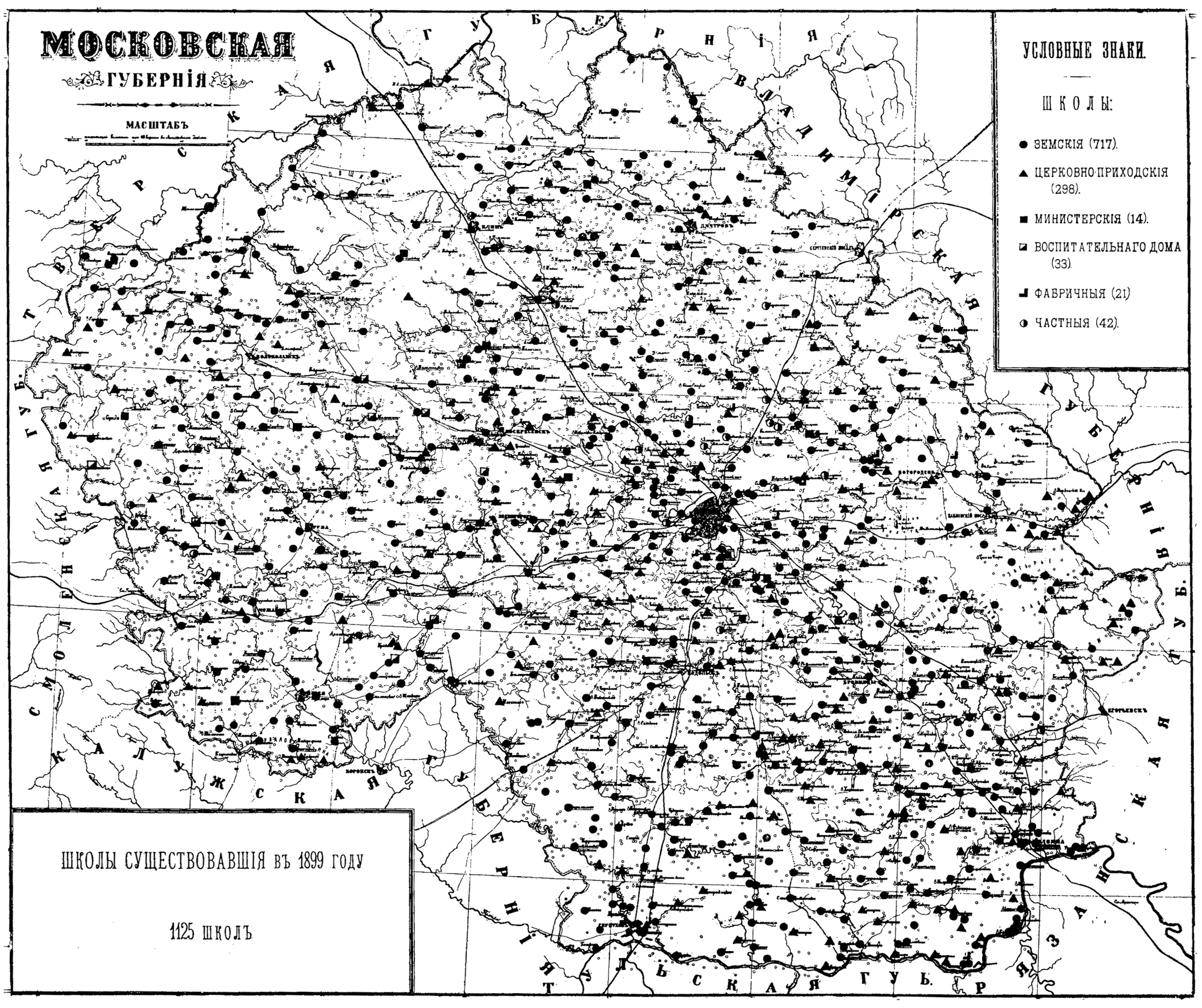 Московская губерния. Школы, существовавшие в 1899 году (1125 школ)