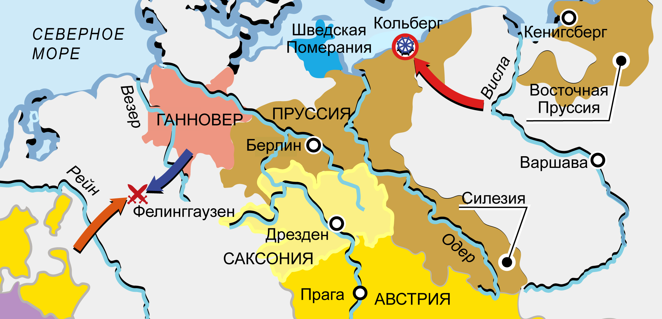 Полки Англии, Испании, Франции, Швеции, Австрии, Баварии, Саксонии, Пруссии