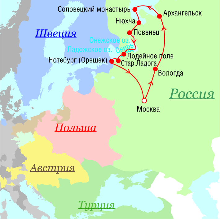 Маршруты поездок Петра I