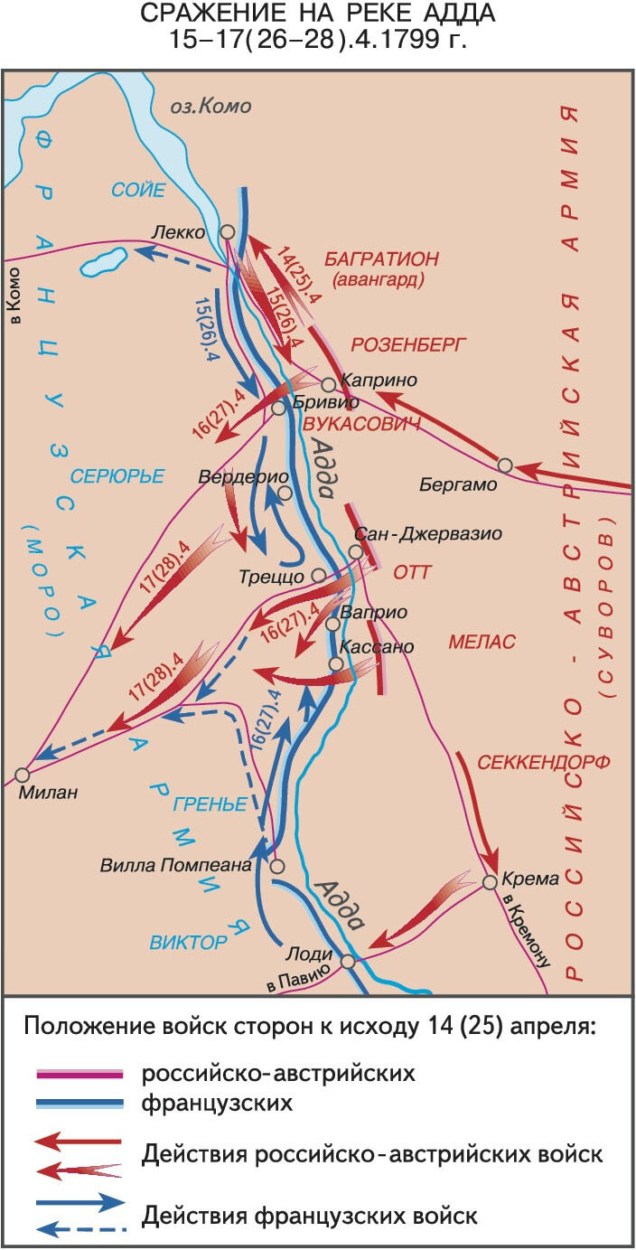 Схема сражения у реки Адда в 1799 г.
