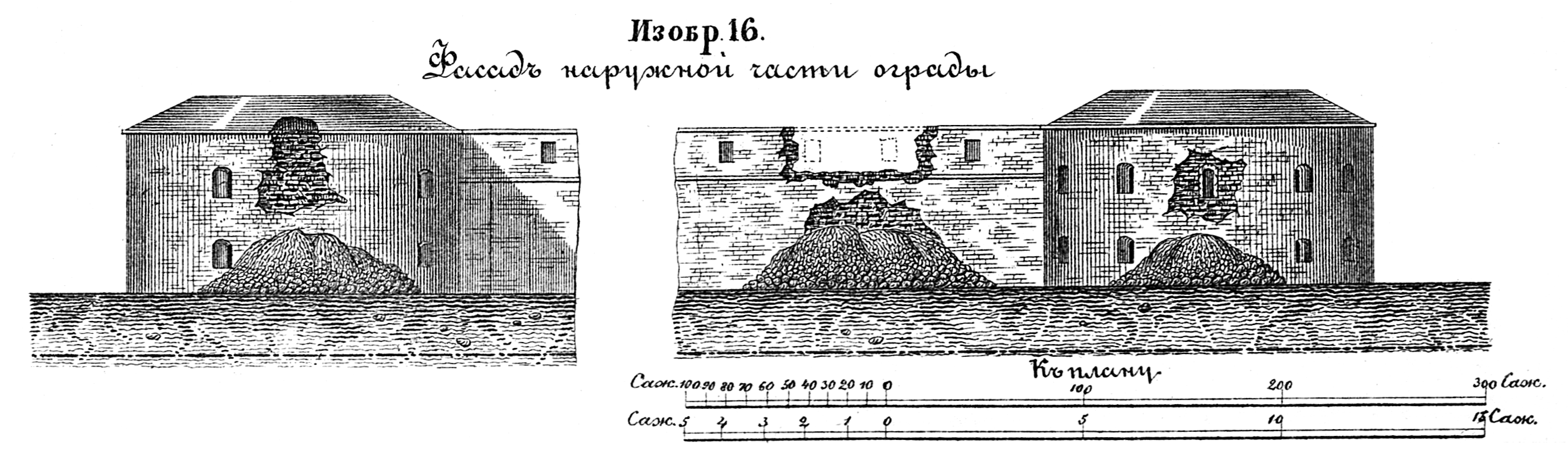 Осада крепости Нотебург в 1702 году. Фасад наружной части ограды. Изобр.16