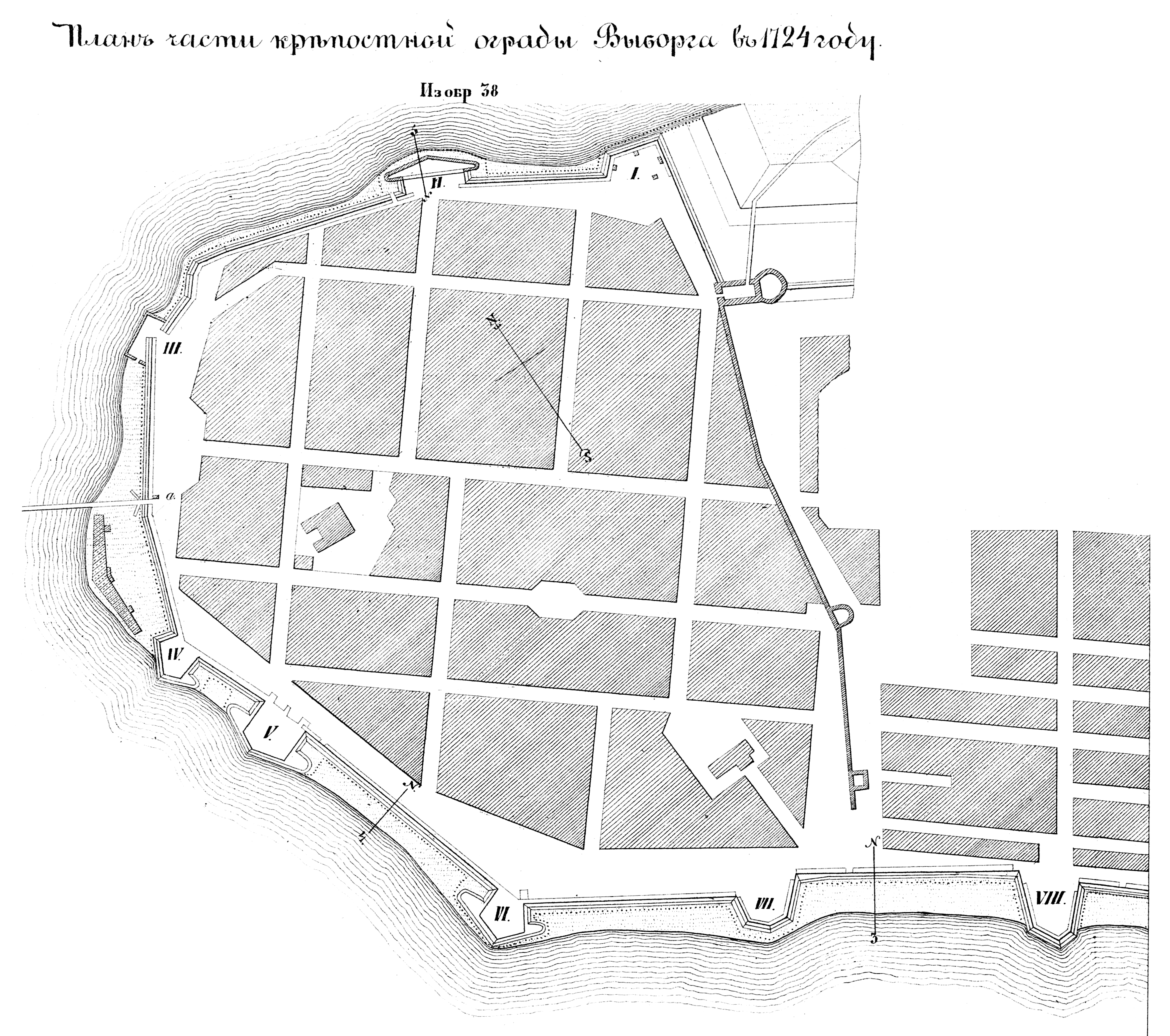 Часть крепостной ограды Выборга в 1724 году