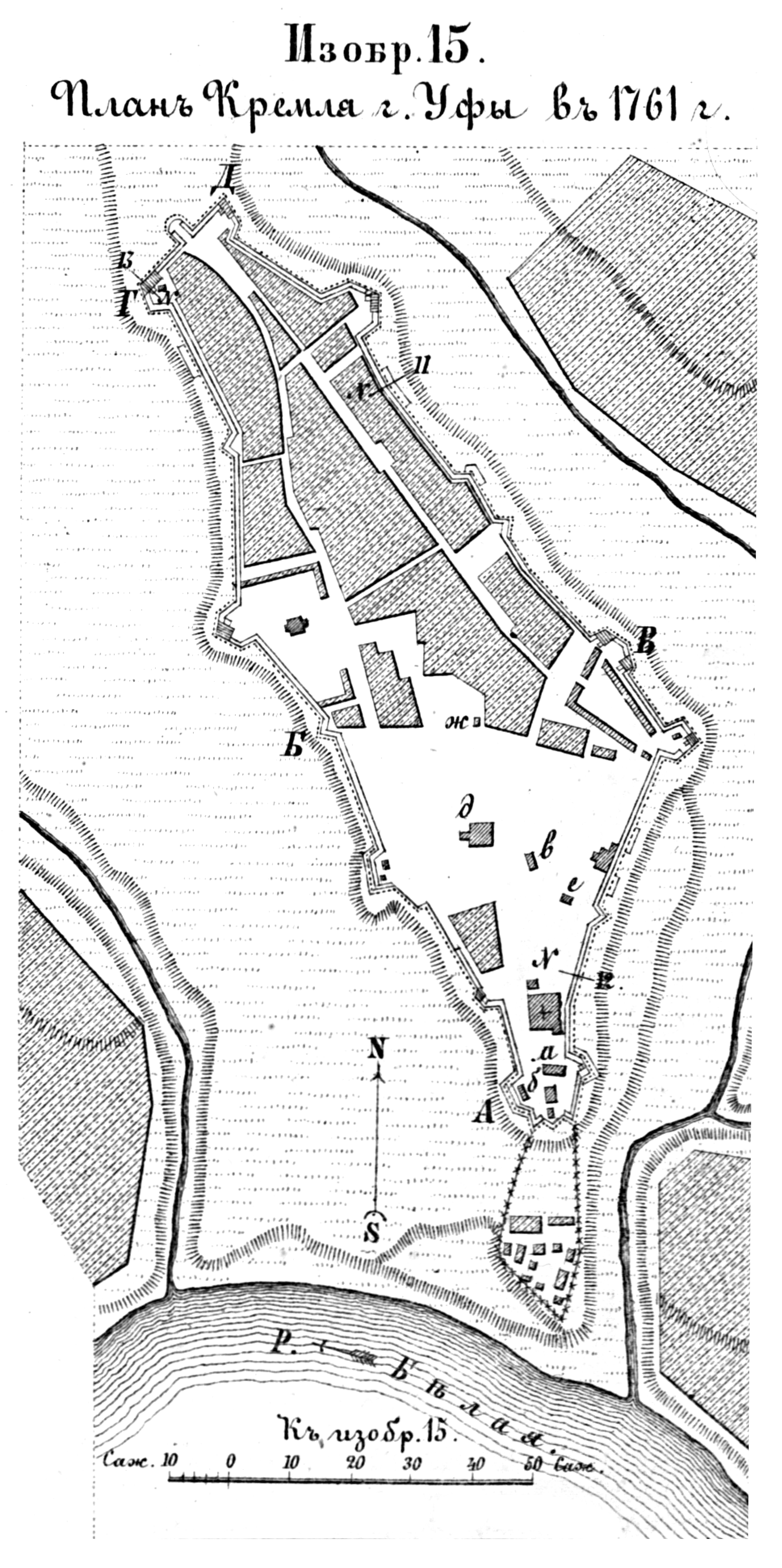 Казань, Черкаск, Уфа. План Кремля города Уфы в 1761 году