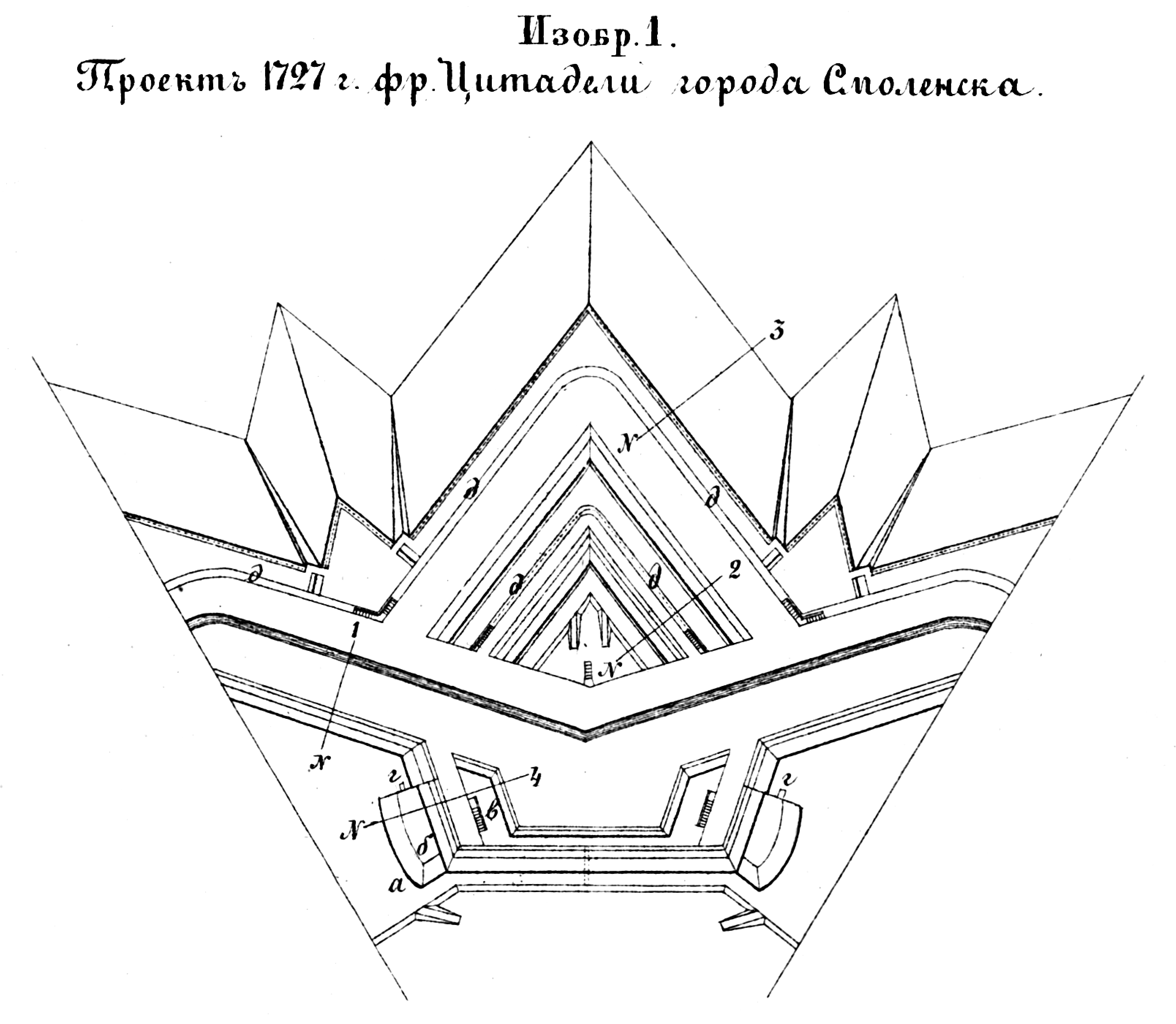 Способы укрепления. Изобр.1. Проект 1727 года фронта Цитадели города Смоленск