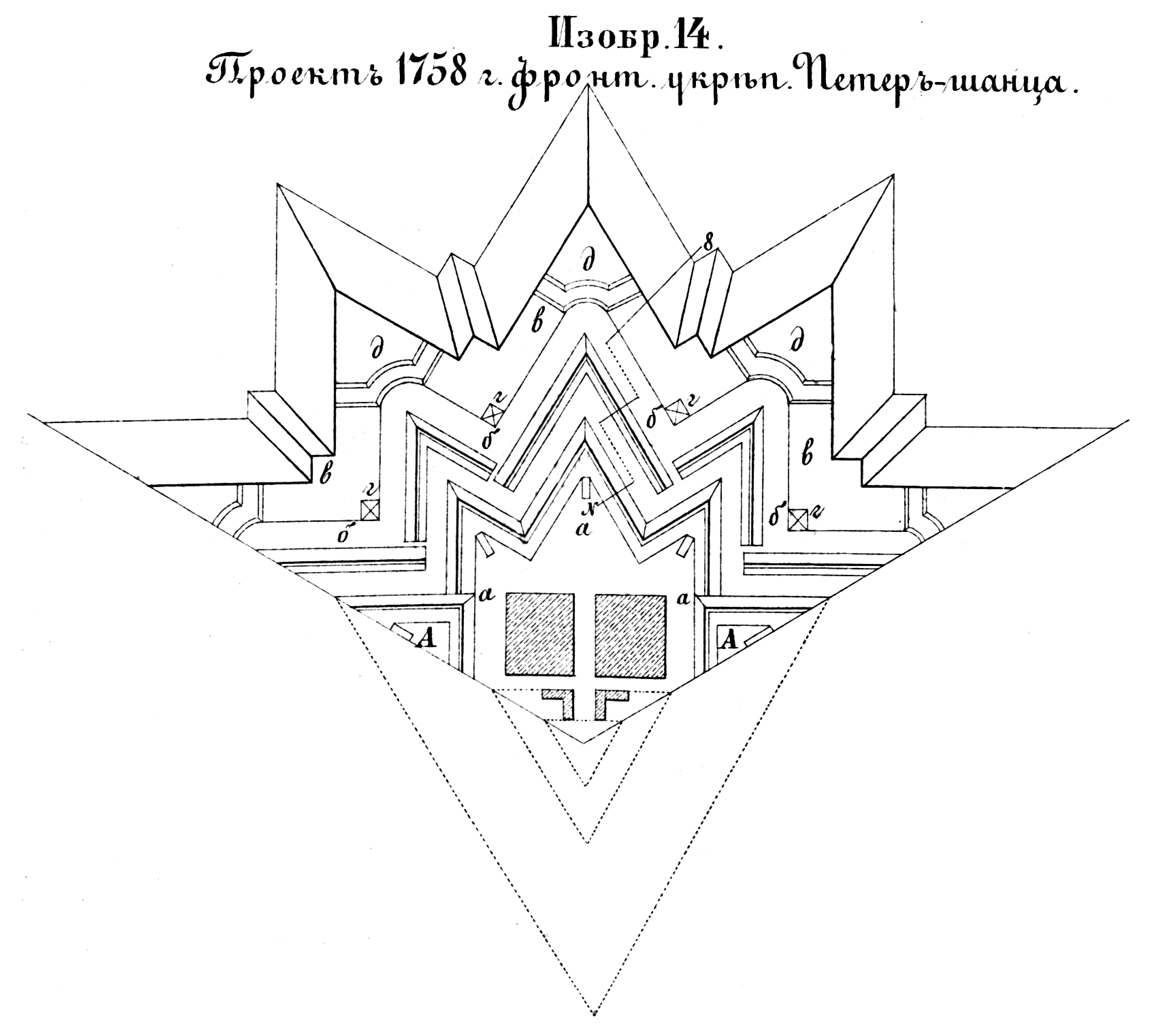Способы укрепления. Изобр.14. Проект 1758 года фронтального укрепления Петер-шанца
