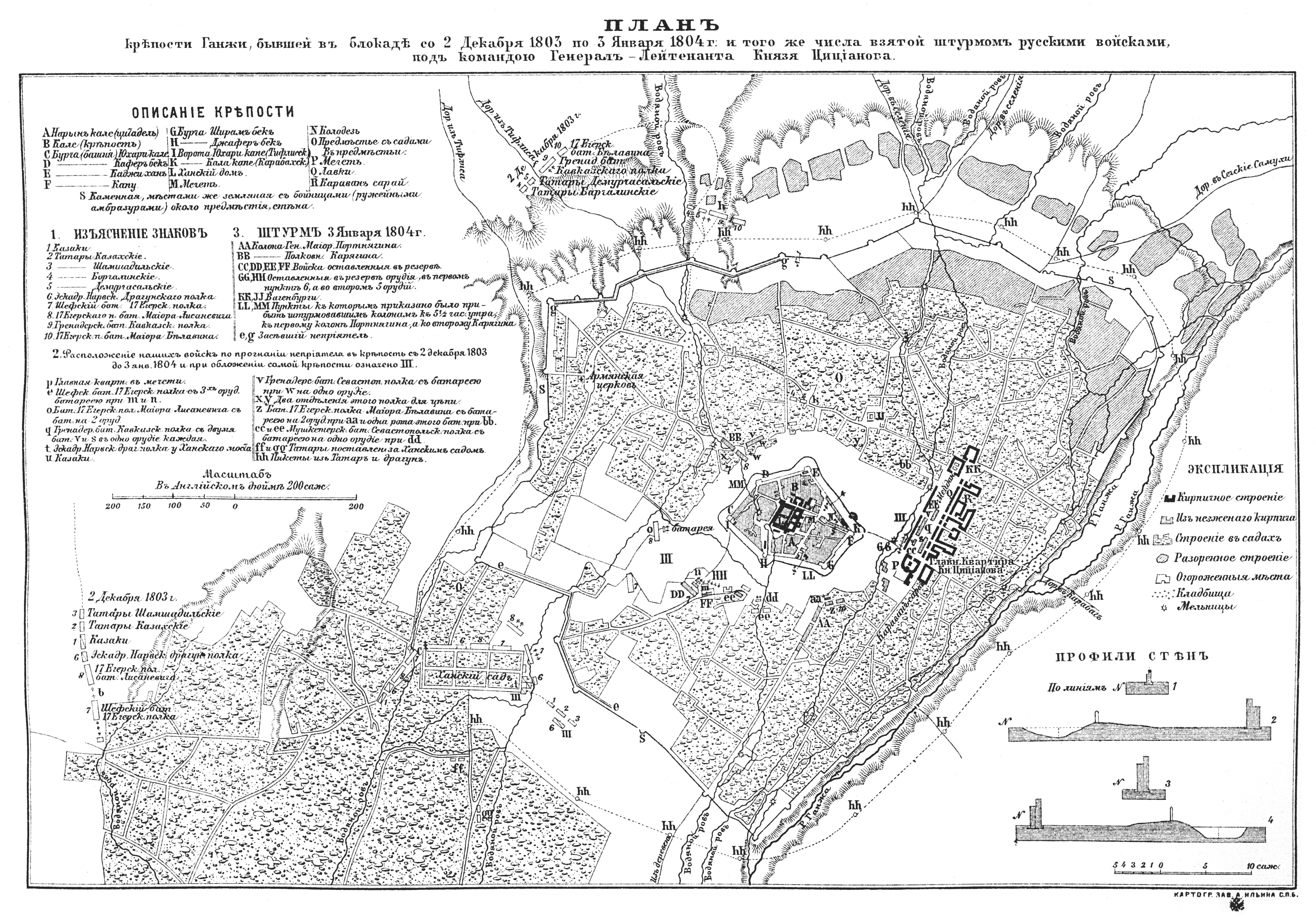 План крепости Ганжи, бывшей в блокаде с 2 декабря 1803 по 3 января 1804 год и того же числа взятой штурмом русскими войсками, под командой Генерал-лейтенанта Князя Цицианова