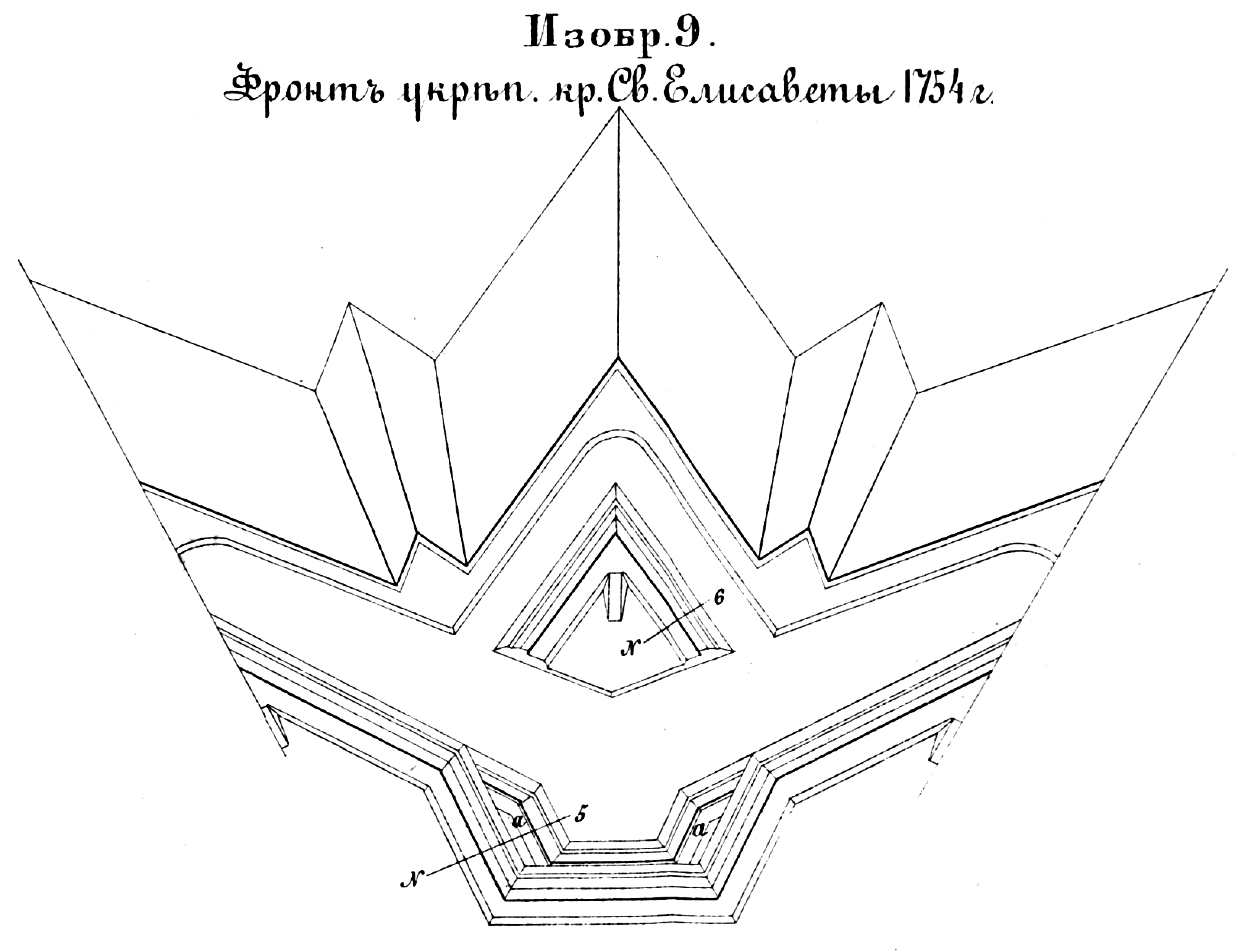 Способы укрепления. Изобр.9. Фронт укрепления крепости Святой Елисаветы 1754 год
